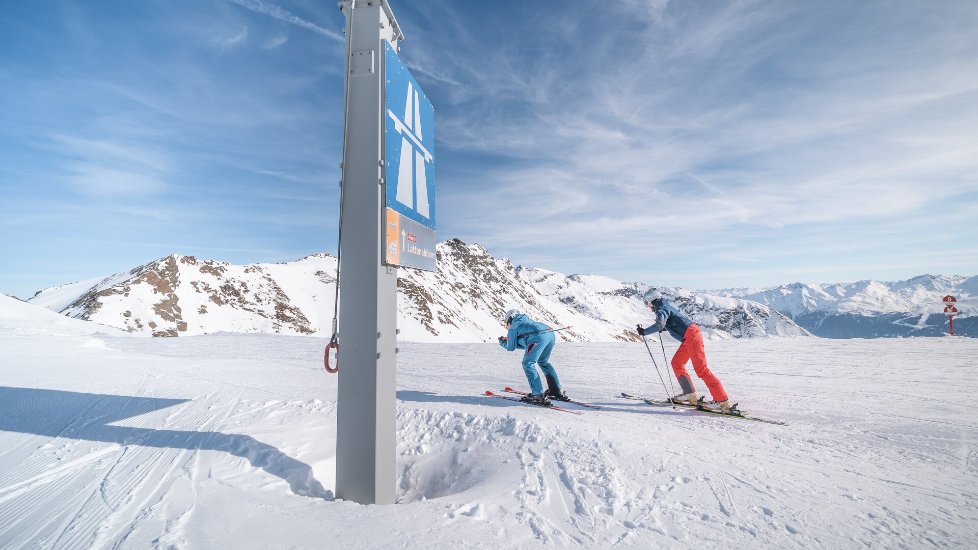 Die Lattenabfahrt zieht sich über rund acht Kilometer und fast 1.500 Höhenmeter bis hinunter ins Tal und bietet auf jedem Abschnitt neue Eindrücke. Oben weit und offen, im Mittelteil sportlich und rhythmisch, und unten eingebettet zwischen verschneiten Hängen – jede Passage hat ihren eigenen Charakter und Anspruch. Mal lädt sie zu weiten Schwüngen ein, mal fordert sie Technik und Ausdauer. So entsteht das, was die Abfahrt so besonders macht: ein fließendes Erlebnis vom Hochgebirge bis ins Tal, bei dem Panorama und Pistengenuss Hand in Hand gehen.