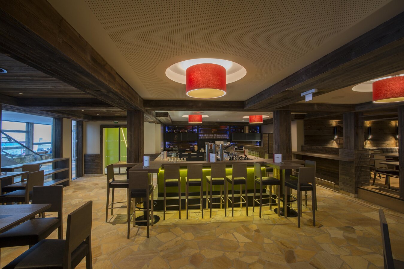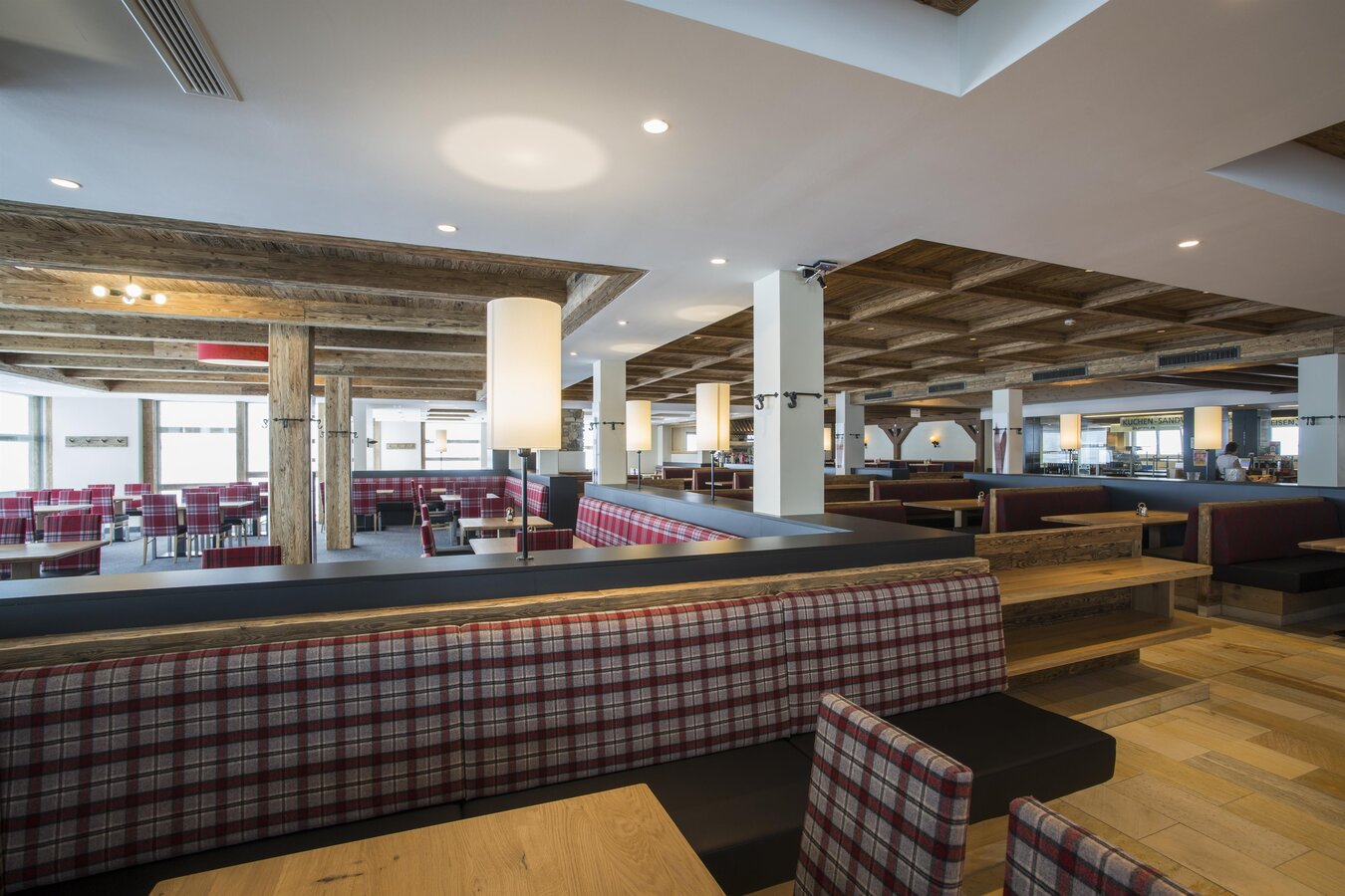 Im Restaurant unternehmen Sie eine kulinarische Reise mit Spezialitäten aus Österreich und Italien. Entspannen Sie Ihre Muskeln, genießen Sie die Zeit im gemütlichen Selbstbedienungsrestaurant und stärken Sie sich für einen spannenden Tag auf den Pisten der Silvretta Arena.
