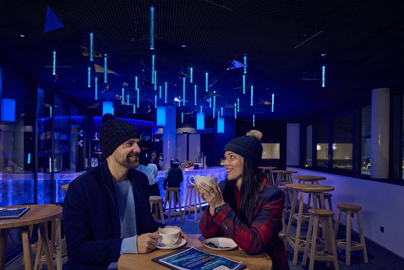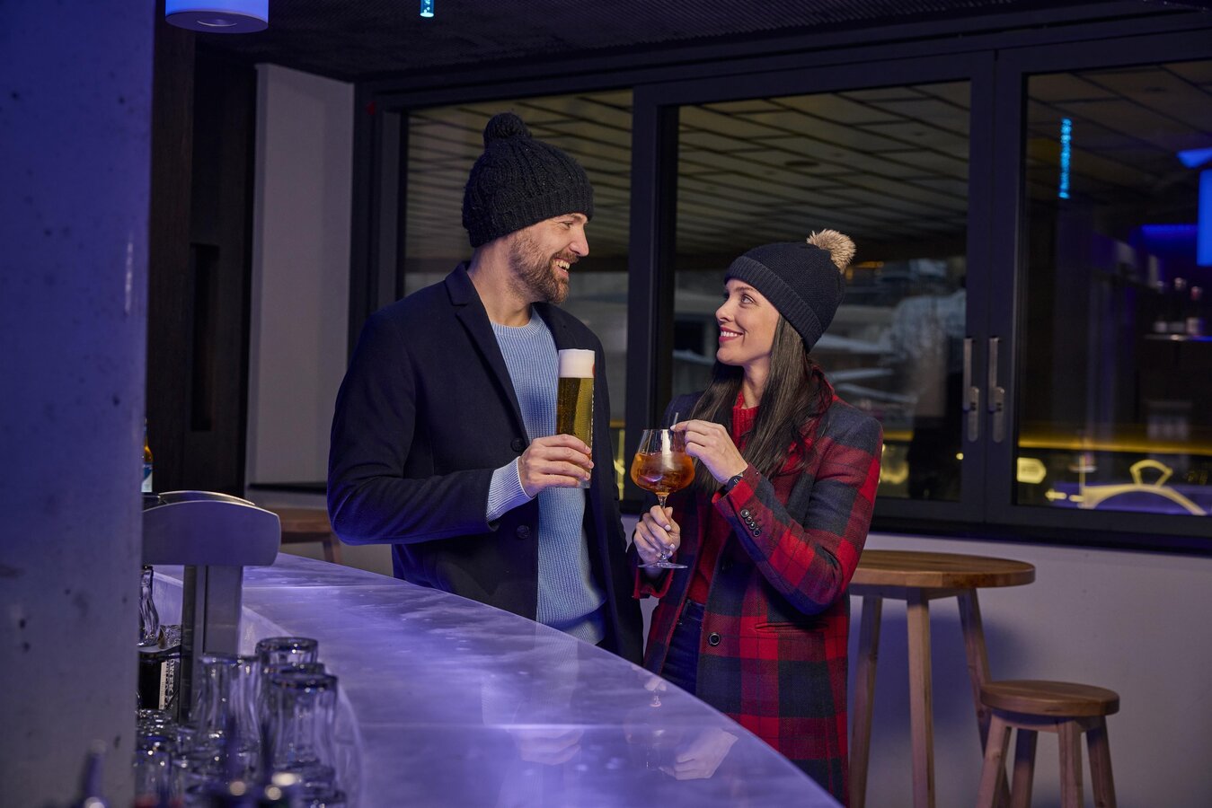 Die Eisbar der Silvretta Therme Ischgl ist der perfekte Treffpunkt für alle, die Eislaufen und Genuss verbinden möchten. Direkt am Eislaufplatz erwartet Gäste ein modernes Design, stilvolles Ambiente sowie eine feine Auswahl an Drinks und Snacks – ideal für eine entspannte Pause im Winter.