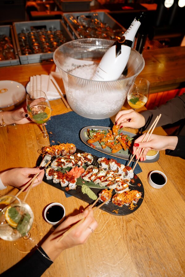 Das Angebot reicht von frisch zubereiteten Sushi-Variationen und Sushi-Metern über südamerikanische Gerichte wie Tacos bis hin zu Austern und Kaviar. Ergänzt wird das Sortiment durch klassische österreichische Speisen, die den alpinen Bezug der Location unterstreichen.