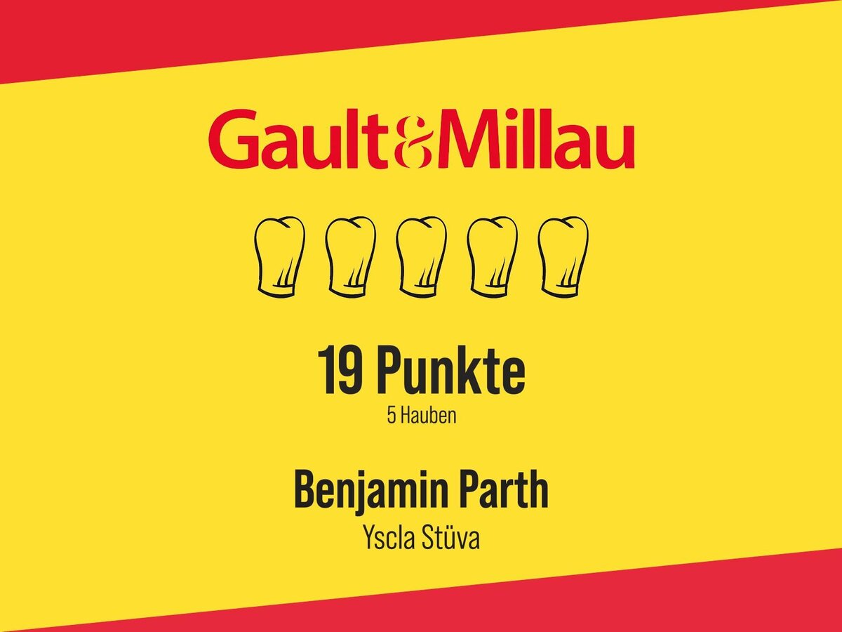 Die Stüva (rätoromanisch für „Stube“) im Gourmet Boutique Hotel YSCLA in Ischgl zählt laut Gault & Millau 2023 zu den sechs besten Restaurants Österreichs. Hier schwingt der 34-jährige Küchenchef Benjamin Parth Zepter und Kochlöffel. Bei der Präsentation der 44. Ausgabe des renommierten Restaurant-Guides Gault & Millau ehrten die Herausgeber Karl und Martina Hohenlohe den Tiroler Koch als „Ausnahmetalent“. Tatsächlich ist Benjamin Parth mit 34 Jahren der jüngste Koch, der jemals die Spitzenbewertung von fünf Hauben in Österreich erkochte.