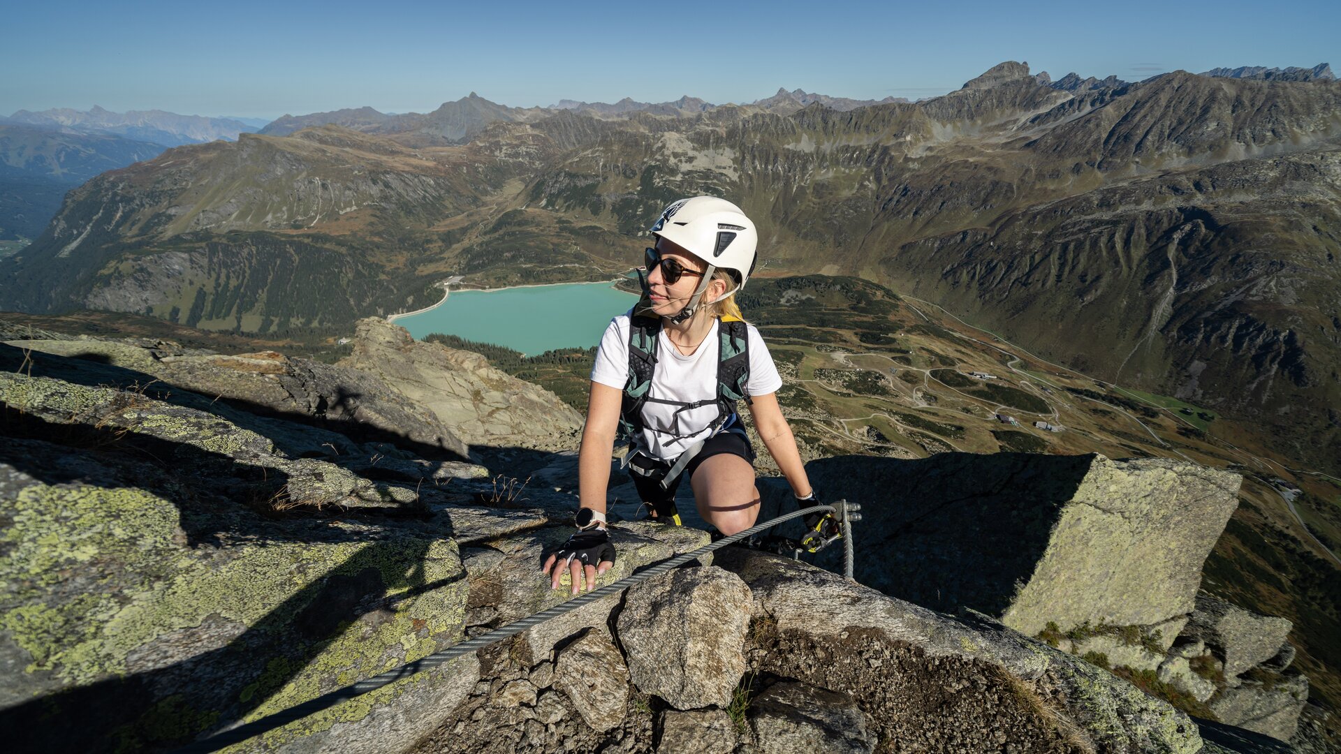 Silvapark via ferrata is located at the north face of the distinctive Ballunspitze, nestled between Tyrol and Vorarlberg. The route is both challenging and varied. If you dare to look down, you can catch a glimpse of the turquoise waters of Kops reservoir.
