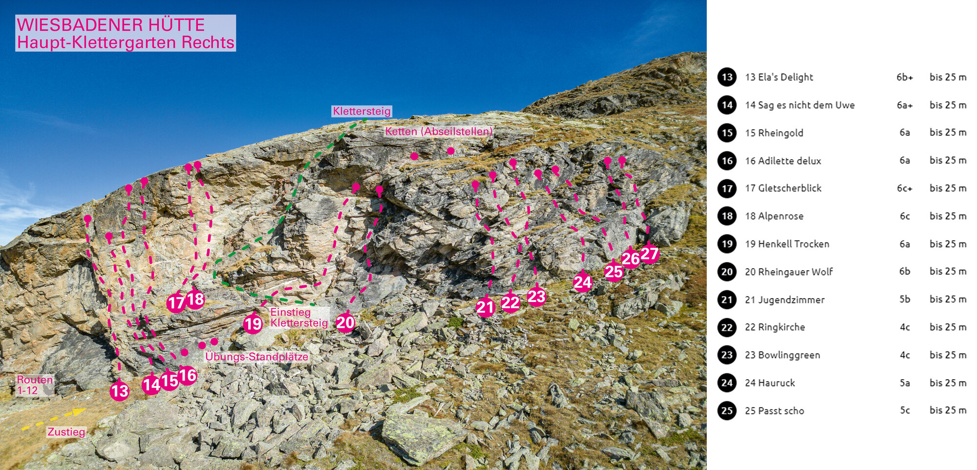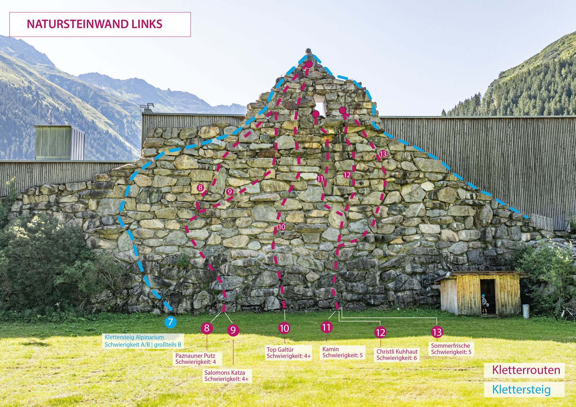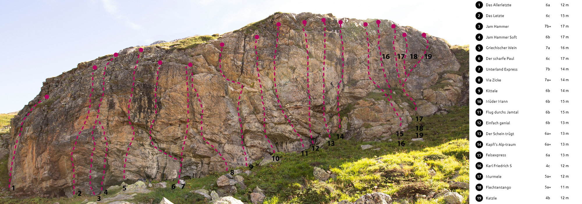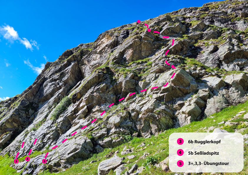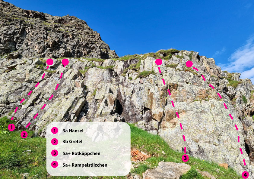 The Niederelbehütte climbing garden in the Paznaun Valley is perfect for climbers of all levels. The family-friendly Märchenwiese sector offers well-secured, easy routes for beginners and children, ideal for first climbing experiences. For advanced climbers, the Kreuzjochblick sector offers more challenging routes. Both areas are beautifully situated in alpine nature and are easily accessible, so that both families and experienced climbers get their money's worth.